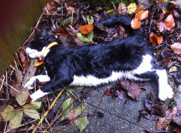 A dead cat has been found in a garden on Manchester Road near Den Bank Avenue.