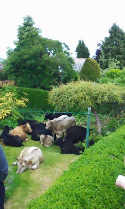 Reports filtered through that the cows had been seen on Worcester Close, Sandygate Park Road and Hagg Lane, peacefully exploring front gardens, back gardens and grass verges.