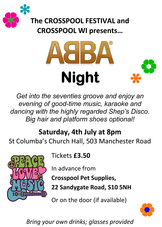 Posted on 10 Jun, 2015 by robinAbba Night at 2015 Crosspool Festival Abba Night – Crosspool Festival 2015 53.380159 -1.521151 Sheffield, Sheffield, South Yorkshire S10 5PL, UK Share this: Click to share on Facebook (Opens in new window) Facebook Click to share on X (Opens in new window) X Click to email a link to a friend (Opens in new window) Email Click to print (Opens in new window) Print Like Loading... Related
