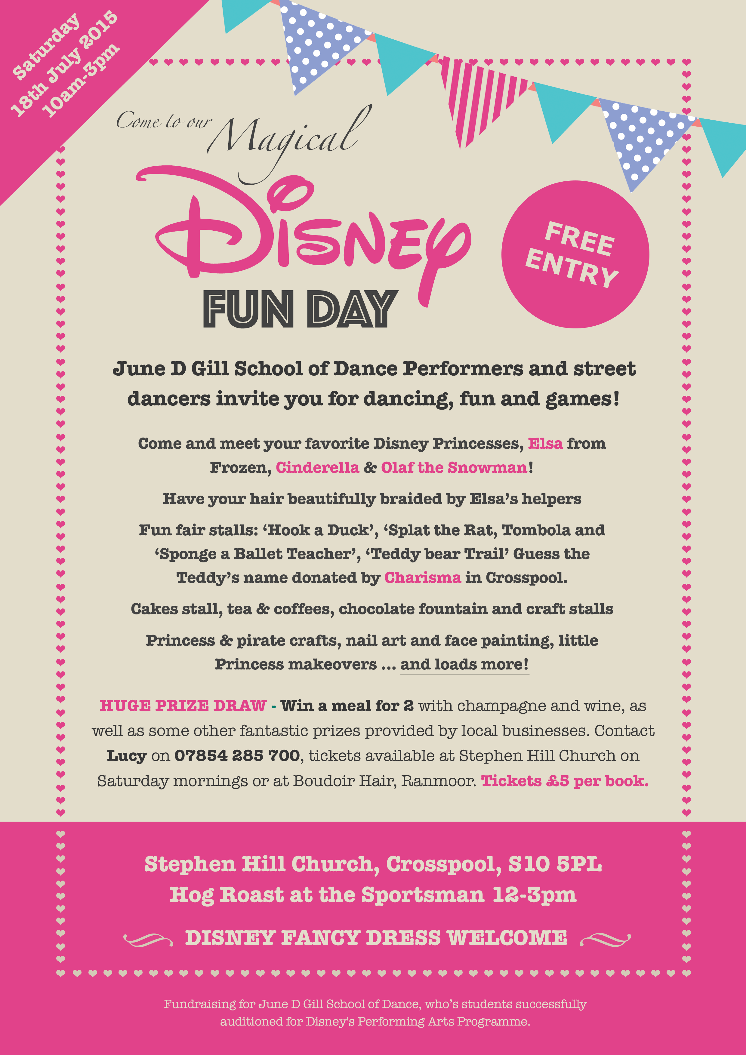 Local Businesses in Crosspool, Fulwood, Ranmoor and Broomhill have donated some fabulous prizes for a raffle. Tickets can be purchased at the Dance School Stephen Hill on Saturdays Mornings or by calling Lucy on 07854 285700.