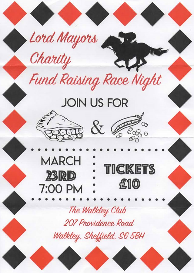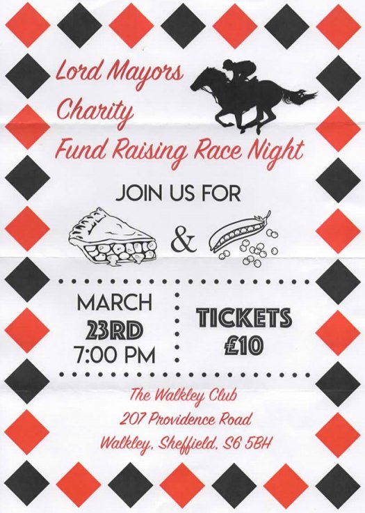 Posted on 19 Mar, 2018 by Chairman Crosspool ForumCharity race night, 23 March 2018 53.394822 -1.508494 207 Providence Rd, Sheffield S6, UK Share this: Click to share on Facebook (Opens in new window) Facebook Click to share on X (Opens in new window) X Click to email a link to a friend (Opens in new window) Email Click to print (Opens in new window) Print Like Loading... Related