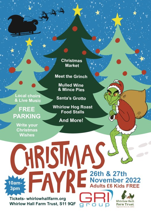 Posted on 25 Nov, 2022 by Chairman Crosspool ForumWHIRLOW FARM TRUST Whirlow Hall Farm Christmas FayreThis Saturday 26th & Sunday 27th November10am-3pmAdults £6 – Kids FREEFREE PARKING Share this: Click to share on Facebook (Opens in new window) Facebook Click to share on X (Opens in new window) X Click to email a link to a friend (Opens in new window) Email Click to print (Opens in new window) Print Like Loading... Related