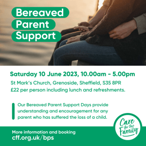 On Saturday 10thJune, to raise awareness for anyone local, the “Care for the Family” national charity is holding a support day at St Marks Church, Grenoside Sheffield S35 8PR for parents who have lost a child of any age or in any circumstance.