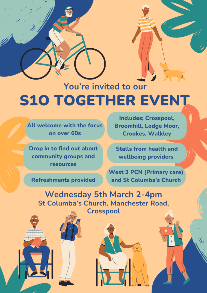On Wednesday 5th March, 2-4pm at St Columba’s Church in Crosspool, the Selborne Road Med. Ctr. are welcoming people eager to learn more about living a healthier, happier and more fulfilling life. The event will promote physical and emotional health with opportunities to find out about and get involved with local activities. There will be a chance to socialise and meet people with free refreshments. Please see the attached poster. Doctors and other members of the practice team will be there!