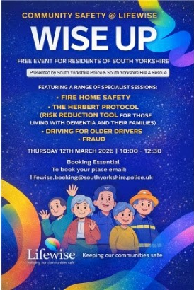 The Joint Community Safety Team at Lifewise is inviting South Yorkshire residents aged 50+ and anyone who cares for an older person, to WISEUP, a free safety and wellbeing event.