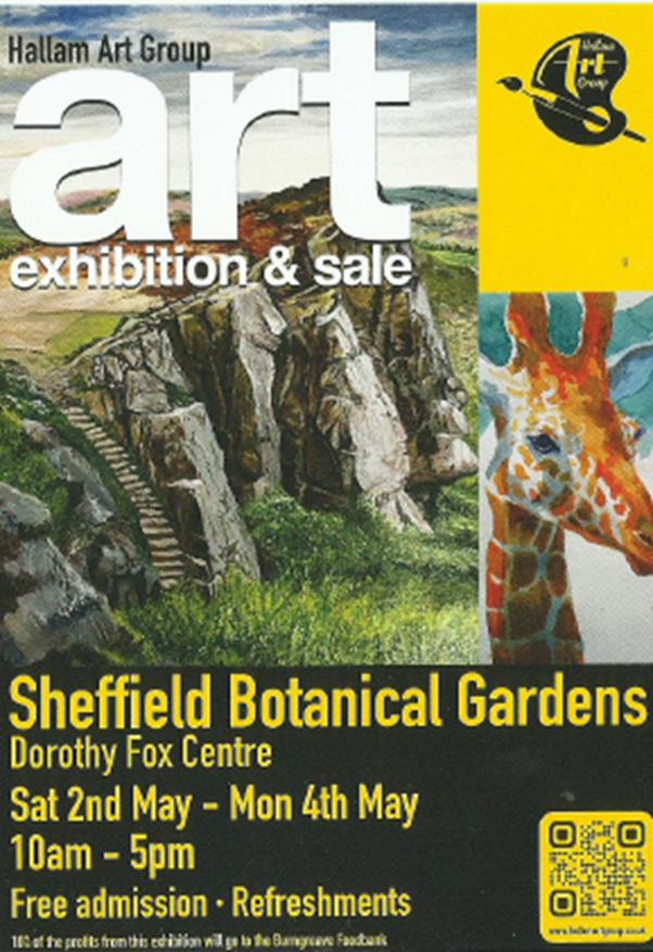 The Hallam Art Exhibition will take place 10am – 5pm, Saturday 2nd May to Monday 4th May at Sheffield Botanical Gardens Dorothy Fox Centre, Admission free – Refreshments