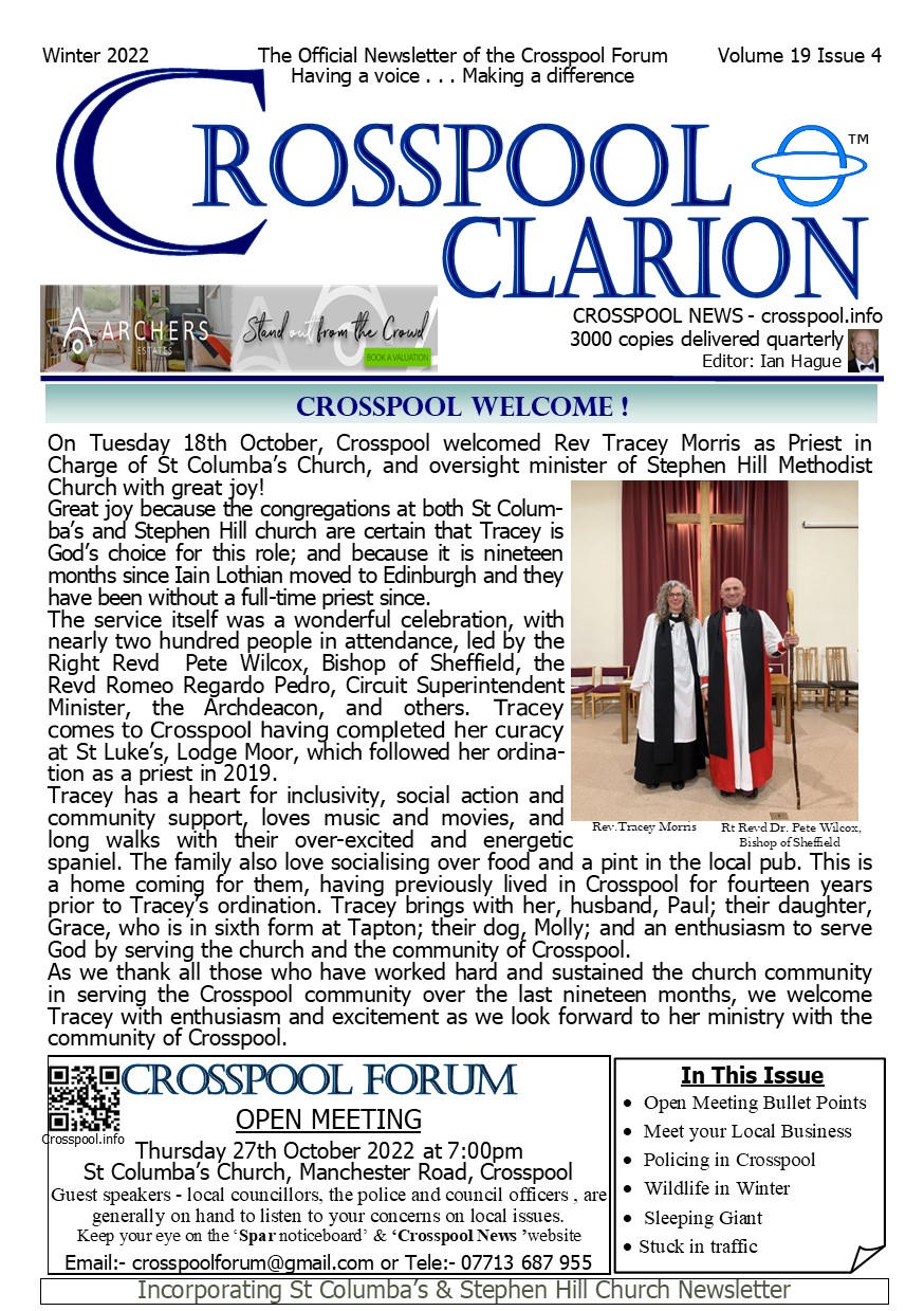 The autumn issue of the Crosspool Clarion (Incorporating St Columba’s & Stephen Hill Church Newsletter) is available to download and read below.