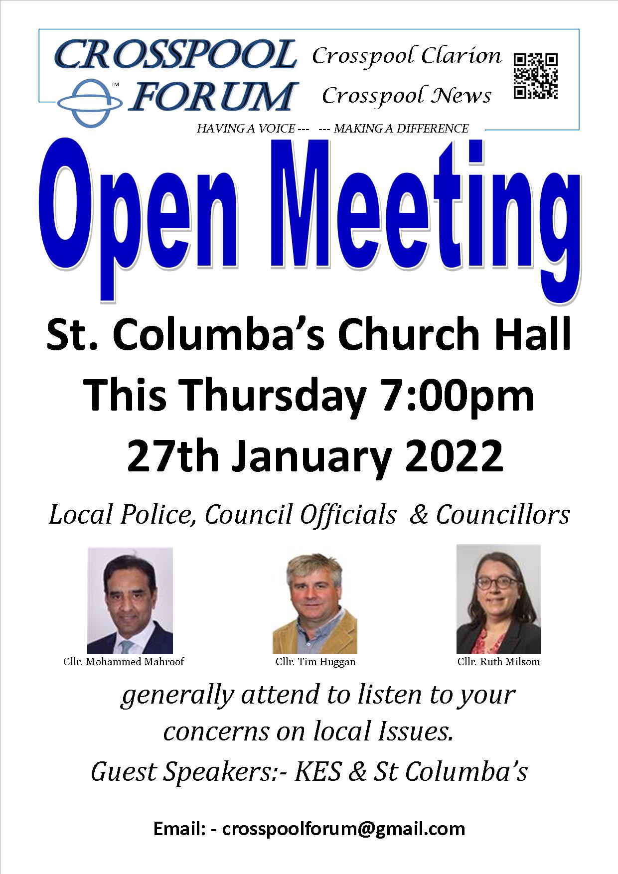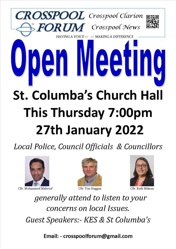 Crosspool Forum Open Meeting this Thursday 27th January 7pm at St Columba’s Church Hall, Manchester Road.