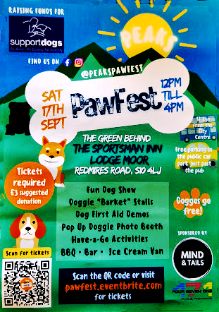 Calling all dog lovers to the Peaks PawFest doggie charity fun day on the green behind “The Sportsman” Lodge Moor, Saturday 17th September 2022, 12noon till 4 pm.