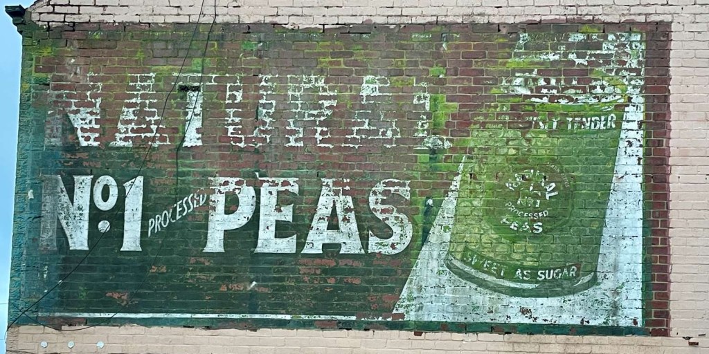 One striking example lives on the gable end of the Cocker and Carr building: the “Natural No. 1 Processed Peas” sign. Timeworn but enduring, it speaks volumes about the area’s local identity and trading history. Its survival is thanks to the resilient oil-based paints of the past, whose pigments have weathered decades of wind, rain, and urban change.