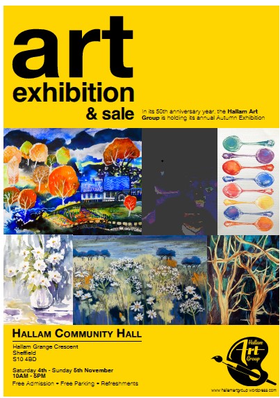 The Hallam Art Exhibition will take place 10am – 5pm, Saturday 15th and Sunday 16th November at Hallam Community Hall, Hallam Grange Crescent, Sheffield S10 4BD. Admission free – Refreshments