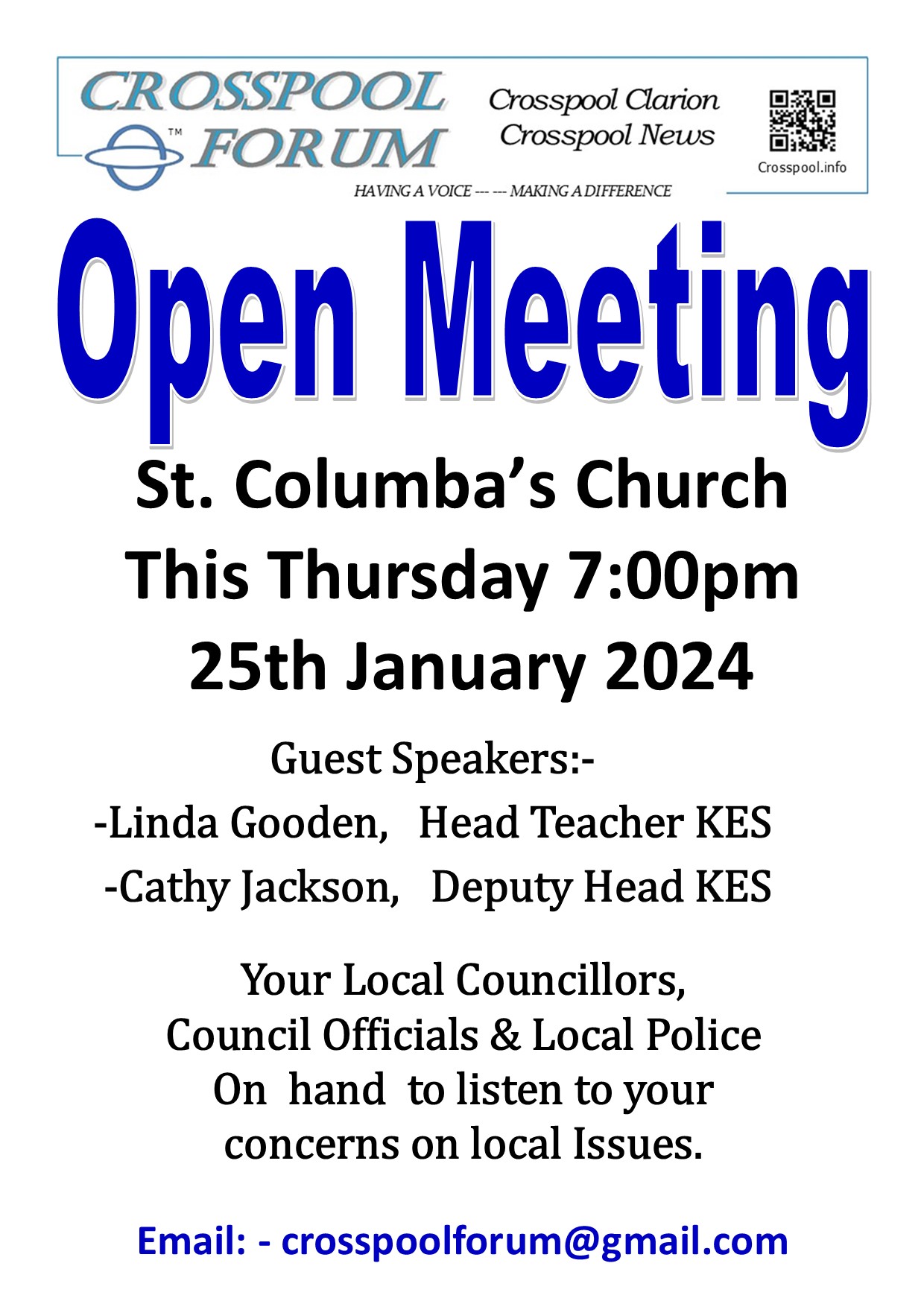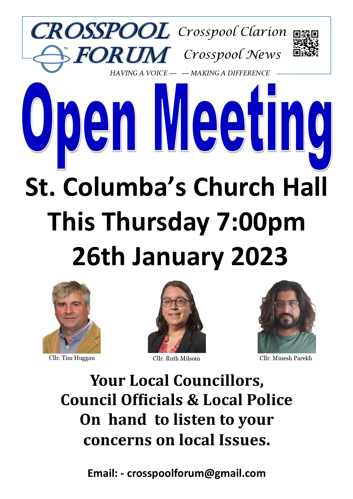 This is an important opportunity to have your voice heard, please do come along to St Columba’s Church tomorrow evening and take part in the conversation.