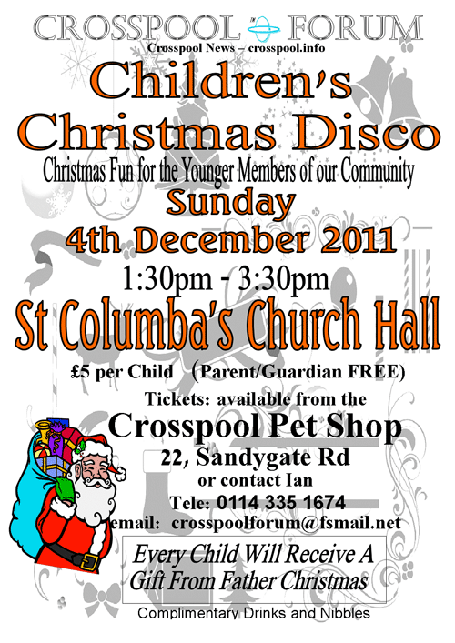 Crosspool Forum is hosting a Children’s Christmas Disco on Sunday 4 December, 2011.