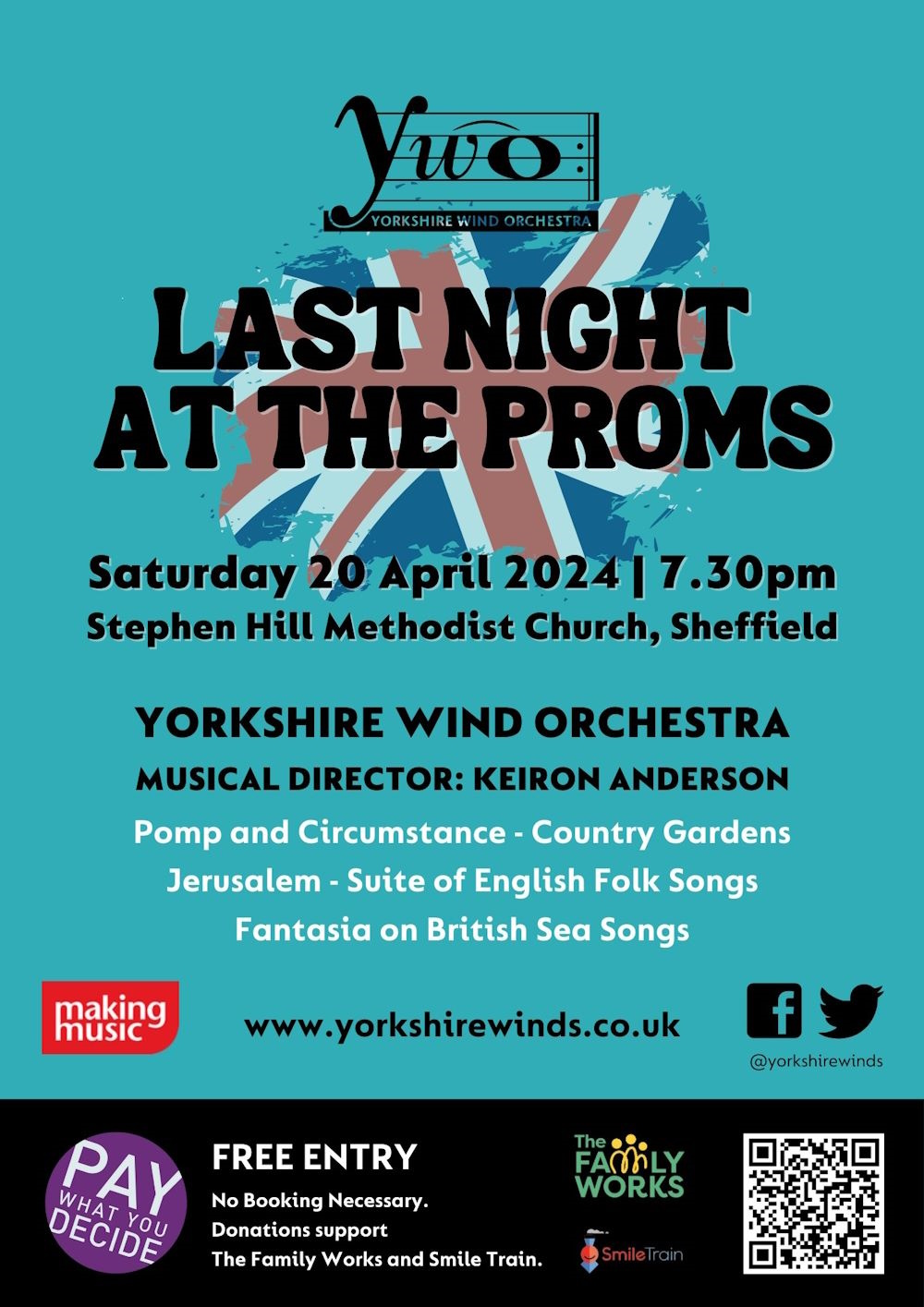 The Yorkshire Wind Orchestra invites you to a magnificent evening of British musical splendour at the Last Night at the Proms concert!   Saturday, 20th April 2024, 7:30 PM, Stephen Hill Methodist Church, Crosspool, Sheffield.