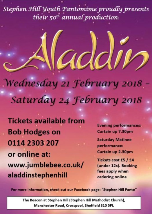 The show promises to be perfect half term holiday fun and includes lots of traditional pantomime laughs – custard pies, comedy sketches, singing, dancing and plenty of audience participation. This is your chance to support the fantastic effort put in by the young people living in and around Crosspool.