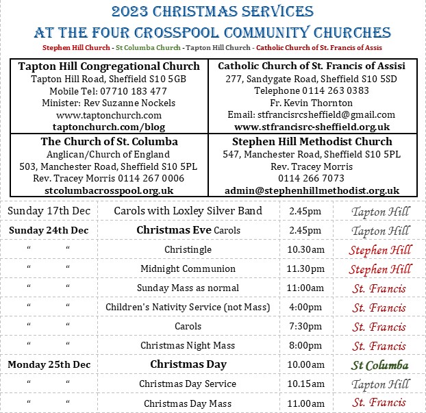 Tapton Hill Congregational Church invites you to join them in the church garden just before 11 am tomorrow, Saturday 11th November, for a service of remembrance around the Crosspool community memorial.
