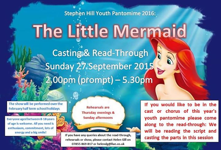 Performances of The Little Mermaid take place Wednesday 10 to Saturday 13 at 7.30pm each evening and there will be a matinee performance on the Saturday afternoon.